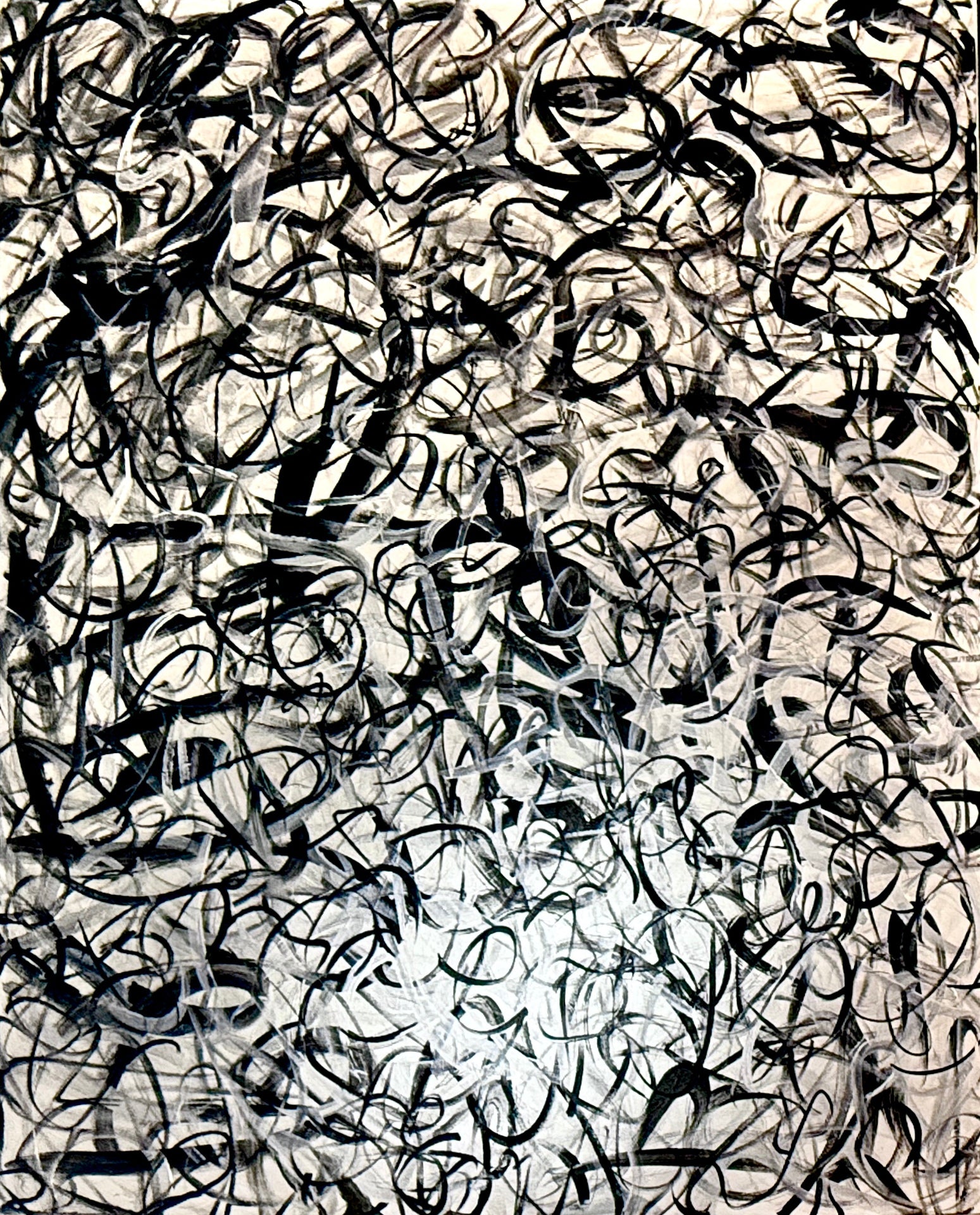 | An abstract portrait of consciousness, built from layered gesture. Motion, repetition, and subtle tonal shifts reveal looping thoughts, inner light, and the ecstatic tangle of a mind alive. A pulse rather than a face; identity as pattern, emergence, and depth. |